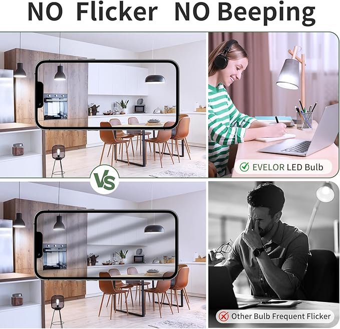 - 【Energy Efficiency】: EVELOR A19 LED light bulb is an energy-saving 9W (60W equivalent) bulb, saving up to 90% energy compared to traditional incandescent light bulbs 60 watt. The led light bulb is designed to be highly efficient, making it an ideal replacement for old-fashioned bulbs.