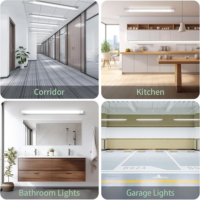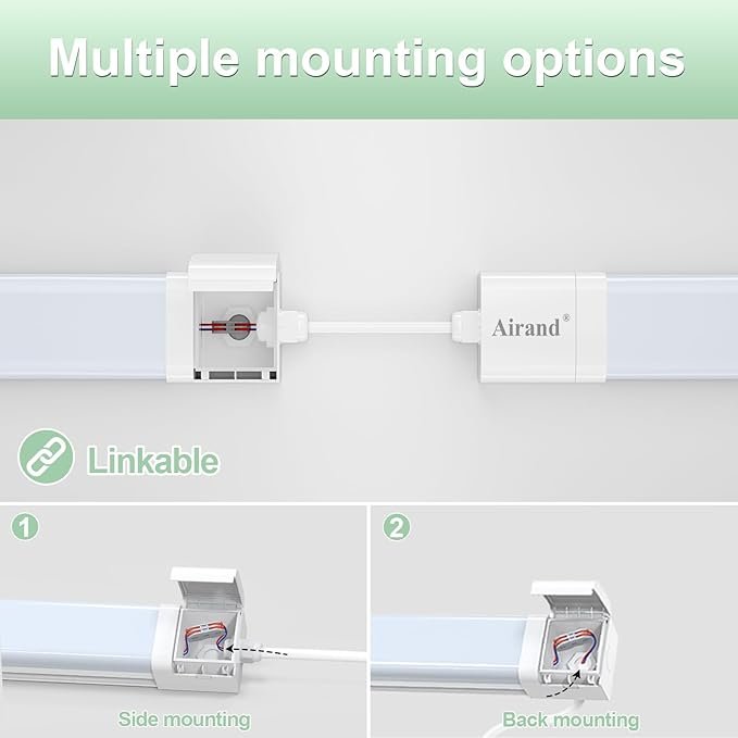 - Multiple mounting options: This 4FT plug in shop light offers multiple mounting options, with accessories included in the package to help you with ceiling or wall mounting, Support for hanging use (hanging rope not included), allowing it to be used in a variety of environments to meet your needs