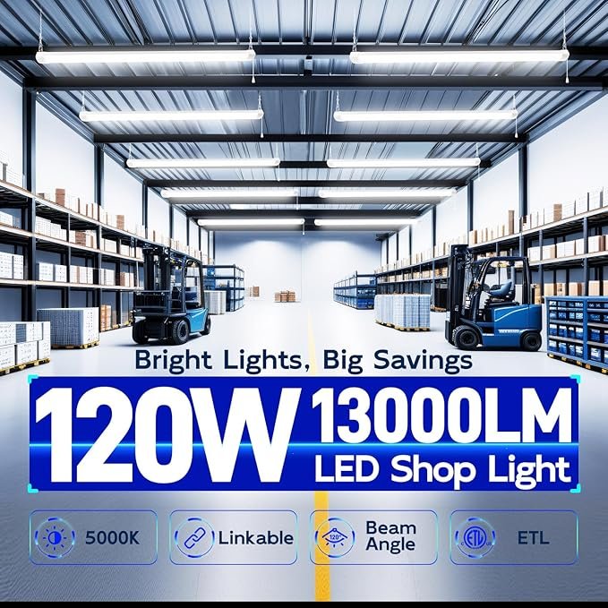 - ✅ Super Bright – Our 4ft utility light fixture feature 13000 lumens brightness at 5000K Daylight White by using only 120W, That is a staggering LED Efficiency of 105 lm/w! Excellent replacement of conventional 400w fluorescent fixture. Energy Savings of up to 70%.