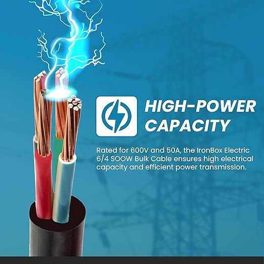 • HEAVY DUTY & DURABLE DESIGN: The IronBox Electric 6/4 SOOW Bulk Cable is built with heavy-duty materials. Featuring a 6 Gauge 4 Conductor setup, it offers strength for industrial and residential applications, making it perfect for demanding environments.