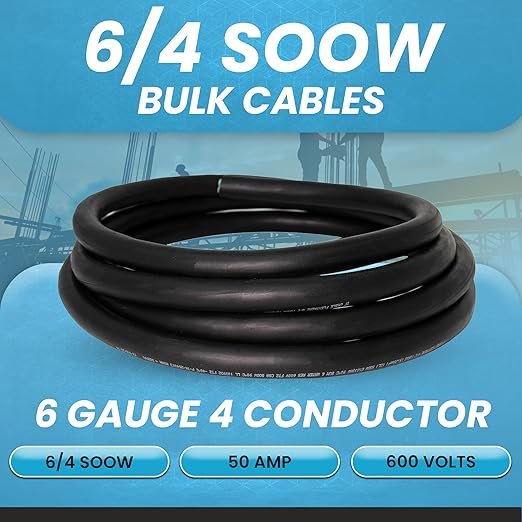 • VERSATILE APPLICATIONS: Ideal for a wide range of uses, this 6/4 SOOW cable is perfect for generators, circuits, and data centers. Its robust construction and premium electrical capacity make it a versatile solution for both heavy-duty industrial applications and residential use.