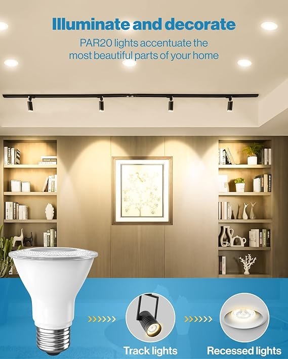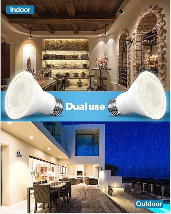 - WATERPROOF – The weatherproof rating ensures our LED PAR20 spot light bulbs can stand up to the elements. Durable dust tight construction provides reliable outdoor security light. Suitable for indoor and outdoor applications such as driveways, basements, decks or garages.