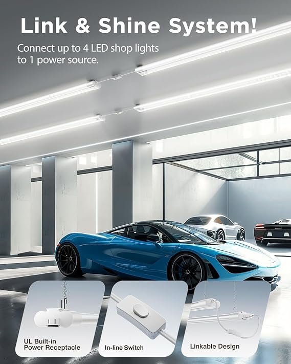 • ✅ LINKABLE – Easily daisy chain the LED shop light to create an extendable design. Seamlessly connect up to 4 LED shop lights together with connectors for energy savings in your home, office, or workspace.